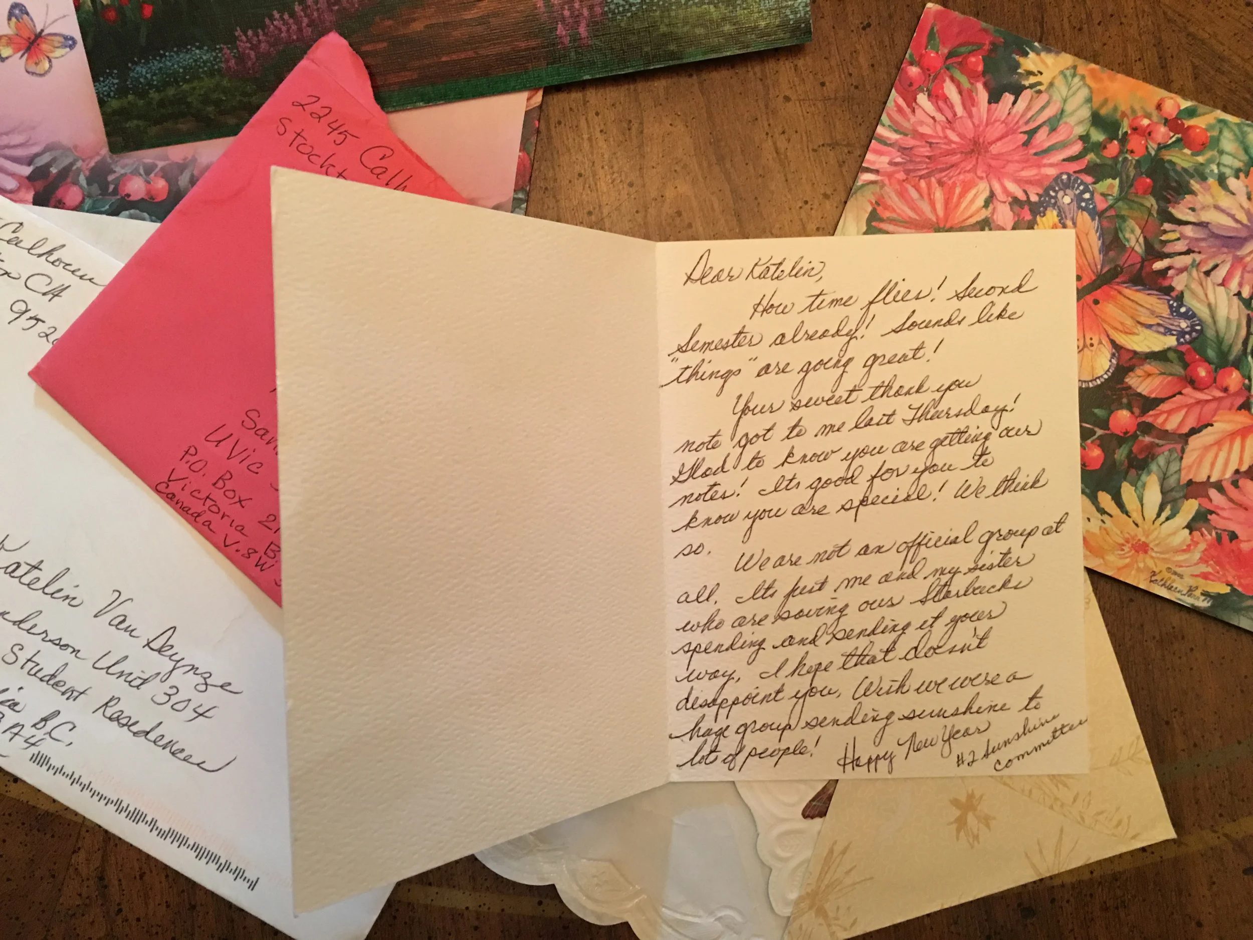 One of the things that inspired us to consider a memorial scholarship in our mother's name was the revelation that she corresponded with former students anonymously as a member of the "Sunshine Committee."